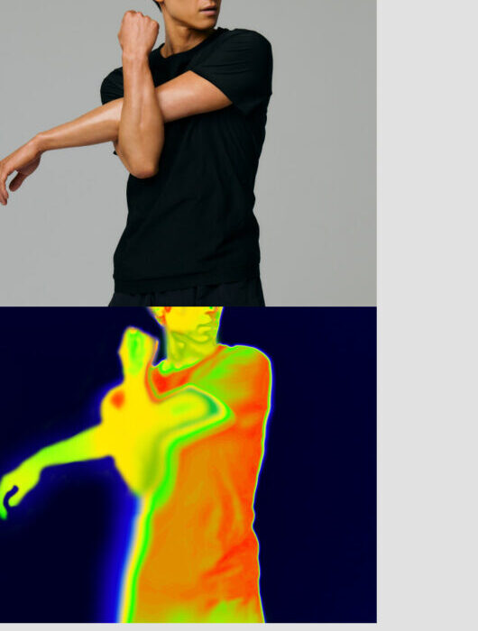 HEATTRAP Tシャツを着ると、身体がじんわりと温まり、まるで低温サウナに入っているかのような心地よいぬくもりを感じます。