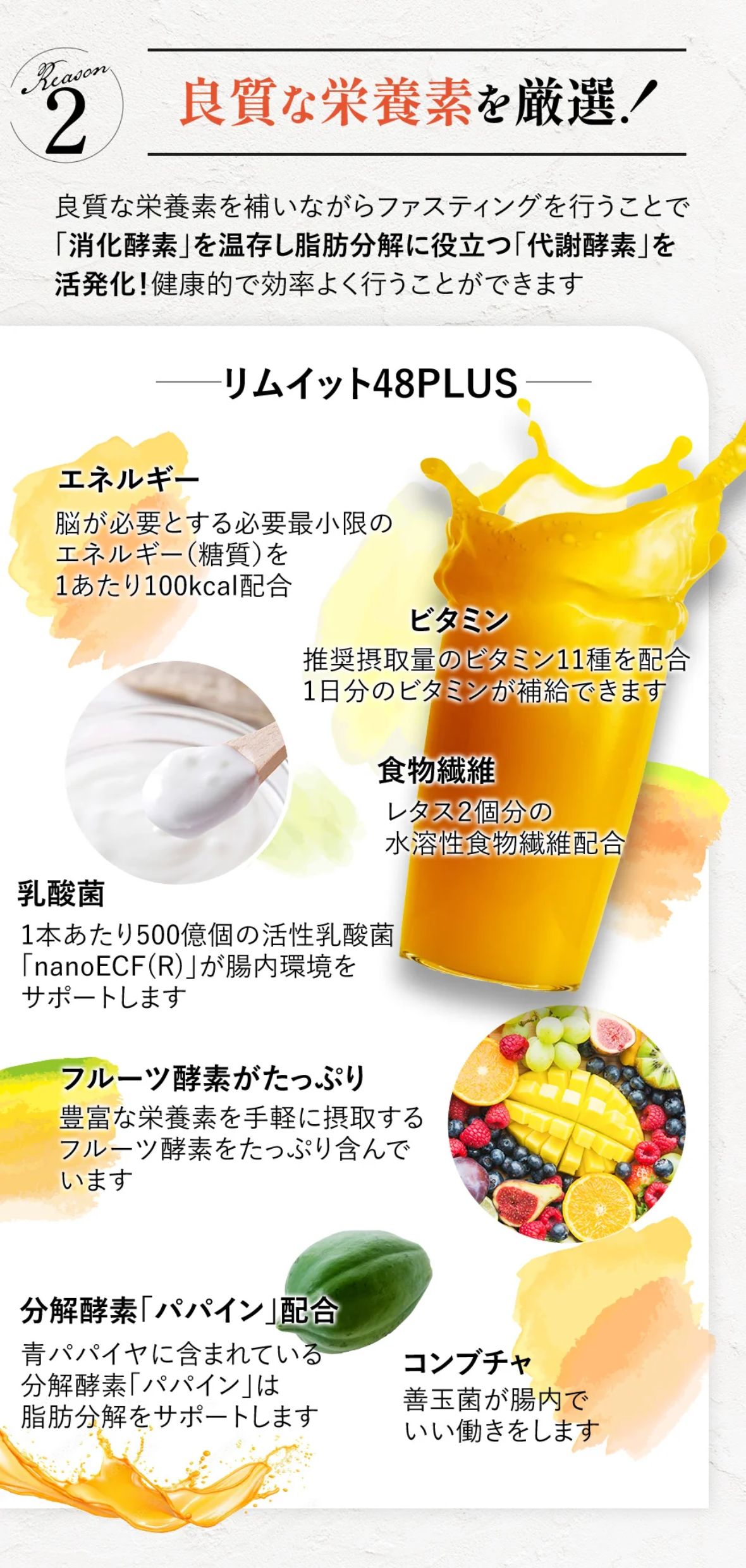 2日間だけでOK!ファスティング専用ドリンク【lim:it 48PLUS(リムイット)】で身体をリセット
